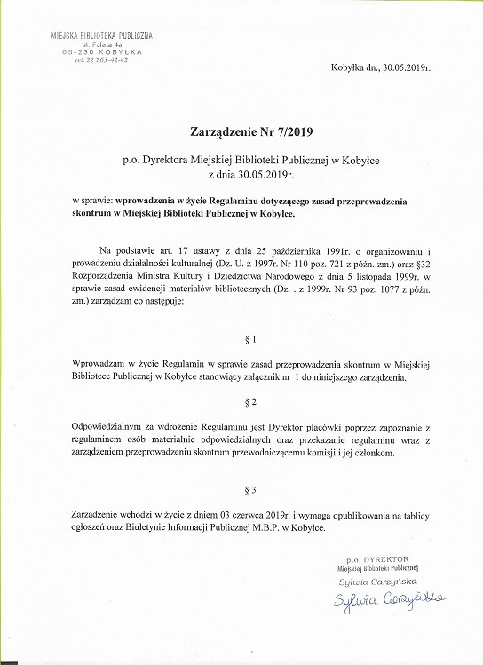 Sylwia Carzyńska) - Dodanie zdjęcia [zarzadzenie_72019_001.jpg] do dokumentu. (Dokument opublikowany)